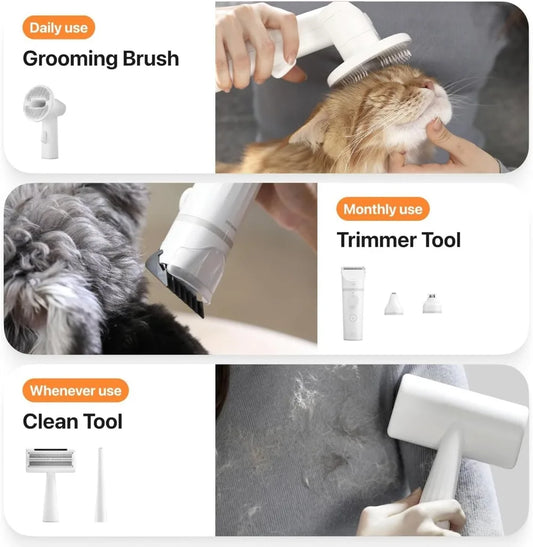 Dog Grooming Kits 3L Capacity Pet Grooming Vacuum with Dog Clippers Nail Grinder 0dB Noise Grooming 8 Tools for Shedding Home