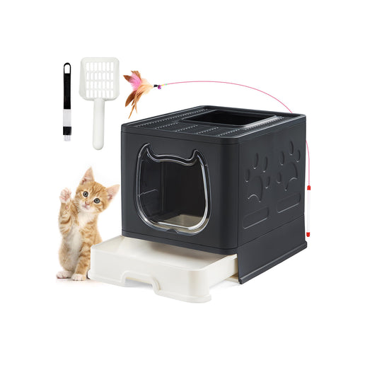 Front Entry Top Exit Cat Litter Box: Foldable with Lid