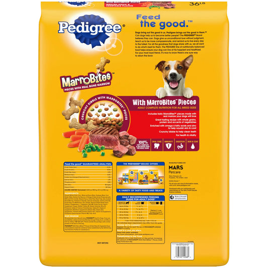 Pedigree With MarroBites Whole Grain Steak & Vegetable Dry Dog Food for Adult Dog, 36 lb ba